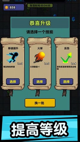 2、擊敗怪物后掉落的能量能讓你提升人物等級,每次升級都有新的技能供你選擇,圖示如下: