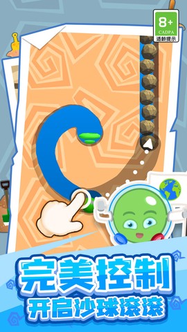 沙球滾滾手游是一款非常有趣的益智闖關游戲,關卡設計豐富多樣,挑戰(zhàn)性十足。你需要在沙地上為小球繪制一條順暢的道路,以助它順利到達終點。途中會遇到各式各樣的障礙物,你可以選擇避開它們,或者靈活利用這些障礙,運用你的想象力和智慧來創(chuàng)造巧妙的解決方案。如果你是一個喜愛挑戰(zhàn)的小伙伴,這款游戲絕對適合你,趕快來試試吧。