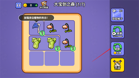 2、選擇你認(rèn)為最佳的植物進(jìn)行刷新,打造強(qiáng)大的防守陣容。