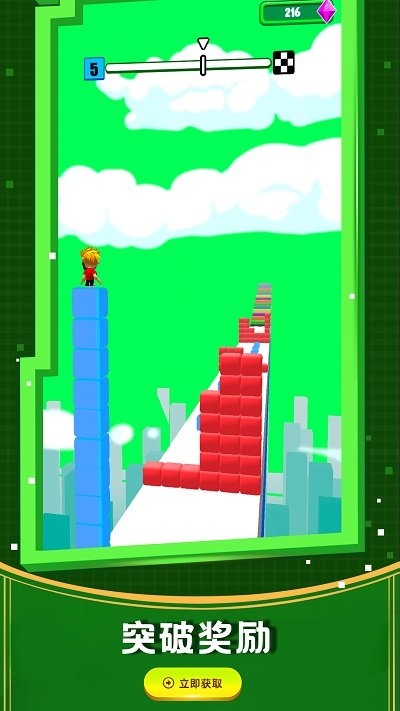 3、接近彩虹階梯時,腳下那些藍色方塊的數(shù)量越多,你在階梯上能夠走得越高。因此,合理收集,提高你的積累數(shù)量,才能更輕松地接近最終的終點。