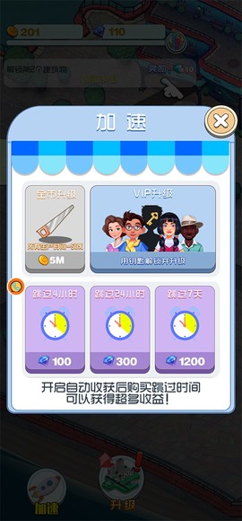 2、通過點擊和滑動簡便地升級建筑,持續(xù)增加你的資金來源。