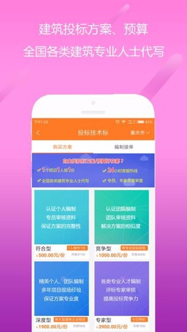 6、而建筑的投標(biāo)方案、預(yù)算等內(nèi)容,軟件中應(yīng)有盡有,你可以輕松尋找各類建筑專業(yè)人士來助你一臂之力。