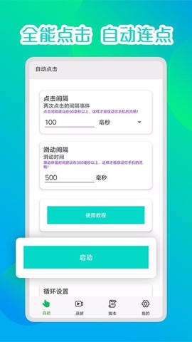 4、自由的動作間隔時間設(shè)置:自動點擊頁面中針對點擊與滑動設(shè)置了靈活的間隔時間,弱化操作疲勞!